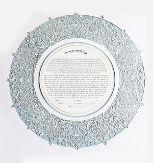 ♥ Museum-quality laser-cut Ketubah, with a pearl paper background layer\ Grey- blue color background